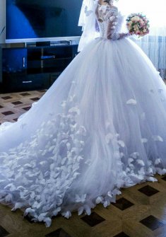 Дорогие невесты, предлагаю вашему вниманию свадебное платье, которое даст Вам ощутить себя частью мирового подиума. Изюминкой модели являются характерные драпировки и уникально встроенный в модель корсет. В этом платье любая невеста будет выглядеть утонченно и изящно, что во многом обусловлено использованием роскошных тканей - атлас, органза и кружево. В качестве доп. штриха: шлейф платья украшены бисером. Никаких аур и проклятий это платье не имеет. В идеальном состоянии.